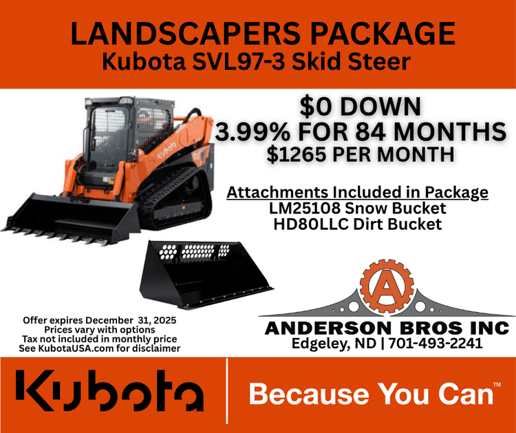 We at Anderson Brothers Inc. have been committed to putting the customer first. It's that commitment that has led us to provide residents from all over the Edgeley community with tough, durable equipment and outstanding services. Whether you're looking to buy equipment for your farming operation or simply need to rent a piece of equipment for a home project, we want to be a part of your success. Let us know how we can help you by visiting us at 311 Main St. Edgeley, ND or give us a call at 701-493-2241.